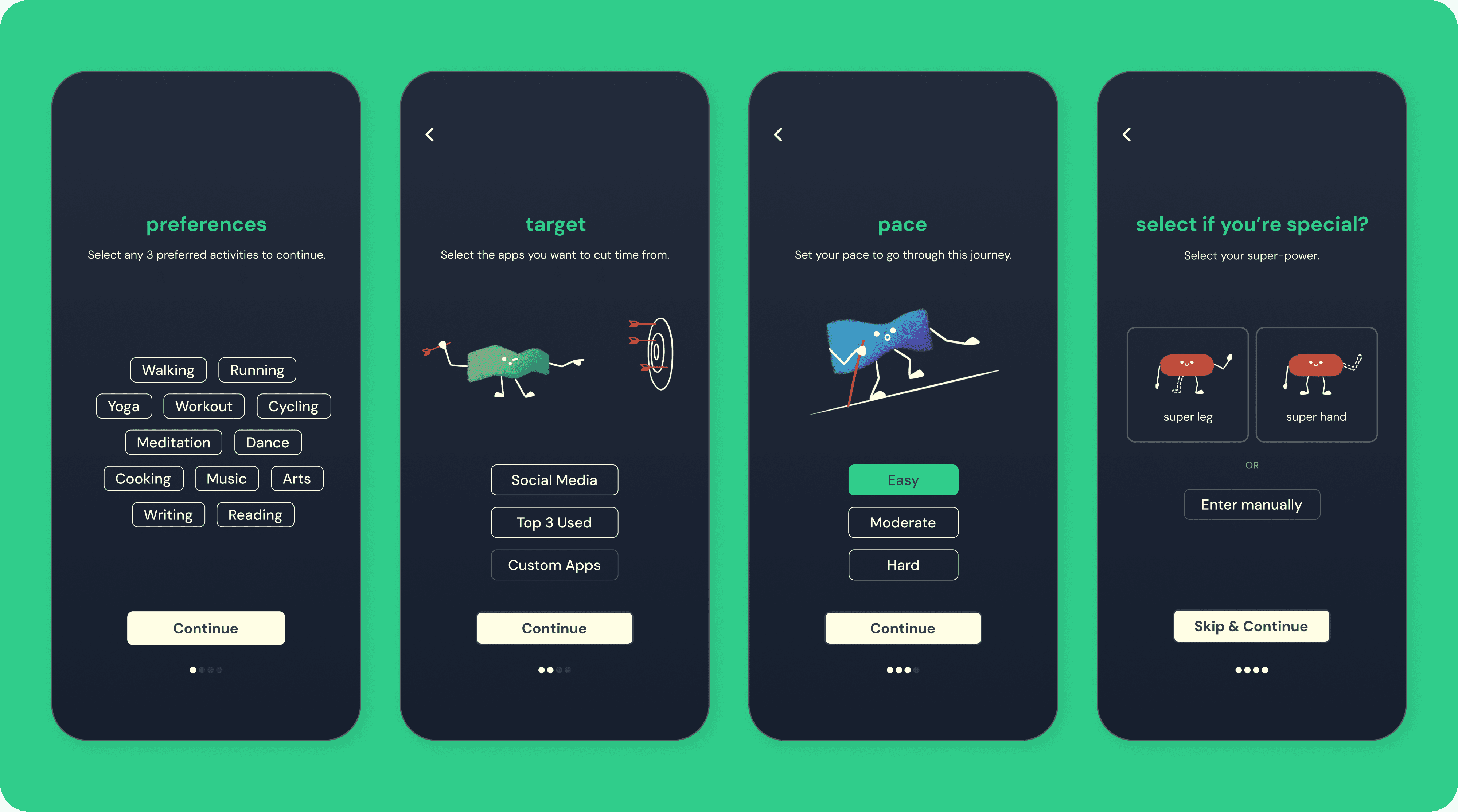 Instead of locking users out, the app motivates them to earn their way back through real-world actions.